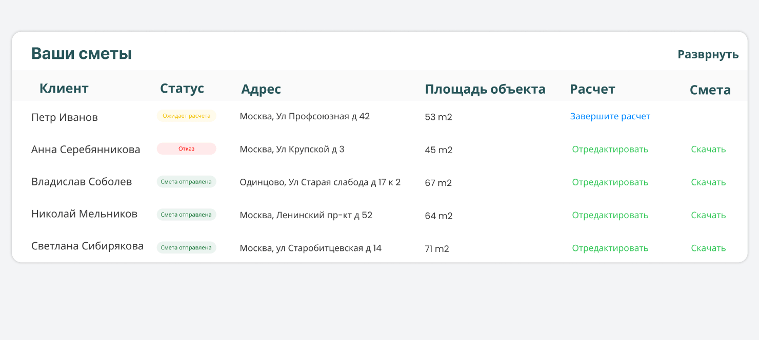 автоматизированны, мы предоставляем клиентам точную смету в день встречи!