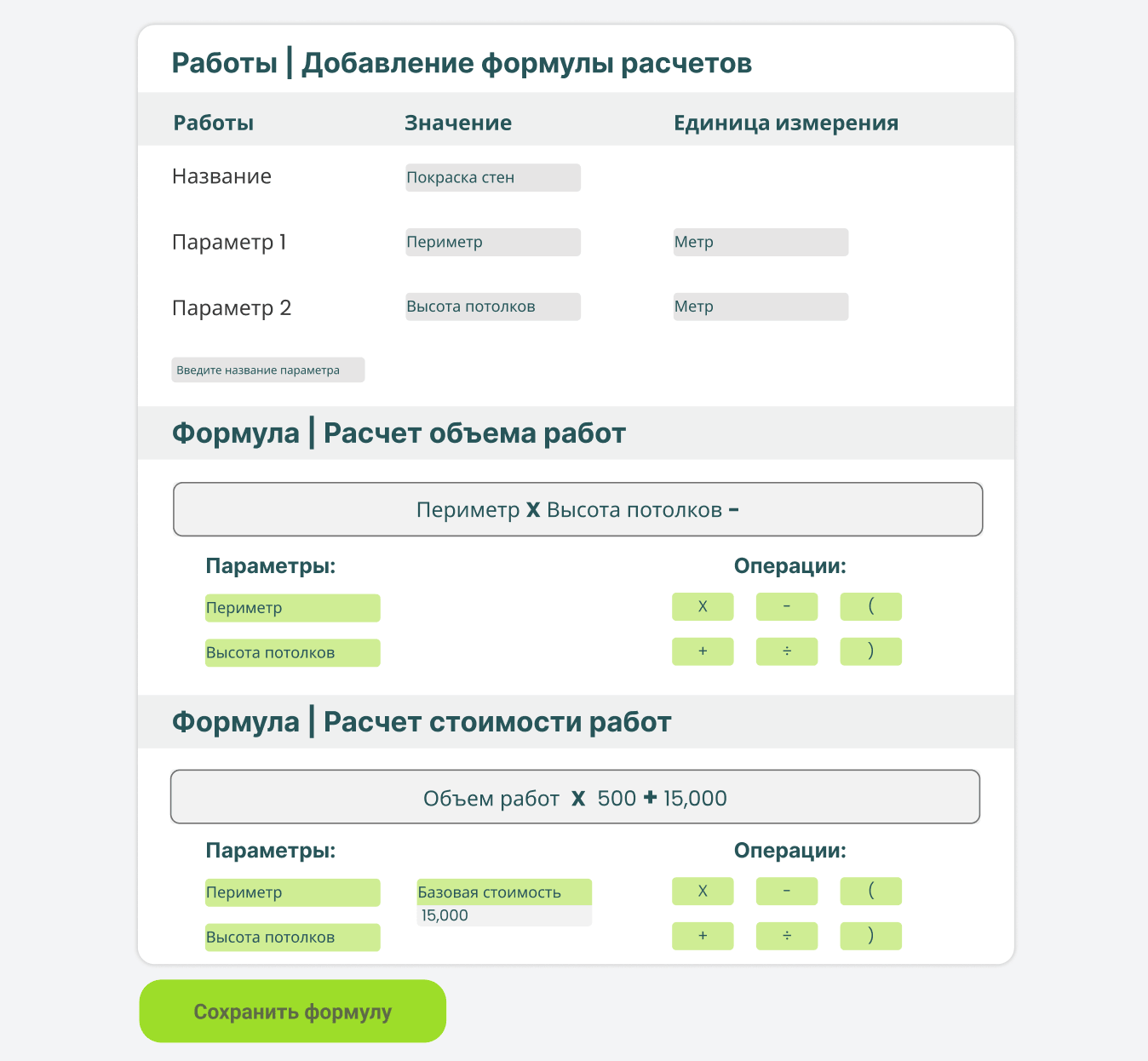 Сохраняйте шаблоны расчета стоимости и объема работ и